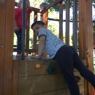 The children continue to develop their gross motor skills with the use of the rope and rock climbing walls. Our hand eye coordination where also extended and further developed with a little ball throwing and catching. Catching a variety of low and high ball tosses. For advanced catching the ball was thrown in front, behind and to the side of the children to encourage them to move their feet as they attempt to catch the ball.