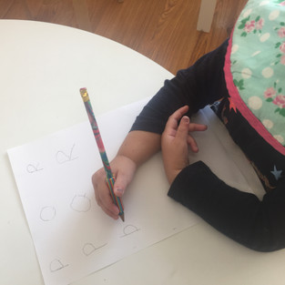 We enjoyed craft filling in one of the “n” letters with coloured rice and colouring in the other “n” on the page. With the letter O the children were requested to colour both letters in. There are several development areas which were extended by this activity. My main focus was to evaluate whether the children were able to follow a simple instruction. A few were but many still required guidance and reassurance.